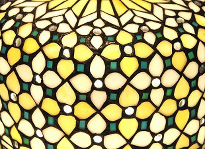 Sobremesa diámetro 30cm Altura 50cm Tiffany opalinas de color beig de cristal reproducción original con certificado numerado. Base ágata azul. La piedra ágata es una hermosa piedra semipreciosa con bandas y patrones únicos. Además de su valor estético, se le atribuyen propiedades metafísicas relacionadas con el equilibrio, la protección y la claridad mental.