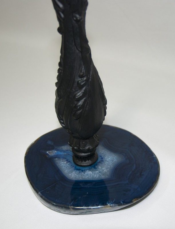 Lámpara de mesa con piedra Agata azúl Serie Queen diámetro 30cm con piedra semipreciosa y certificado